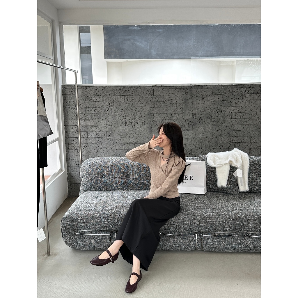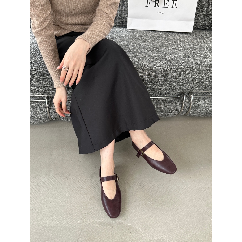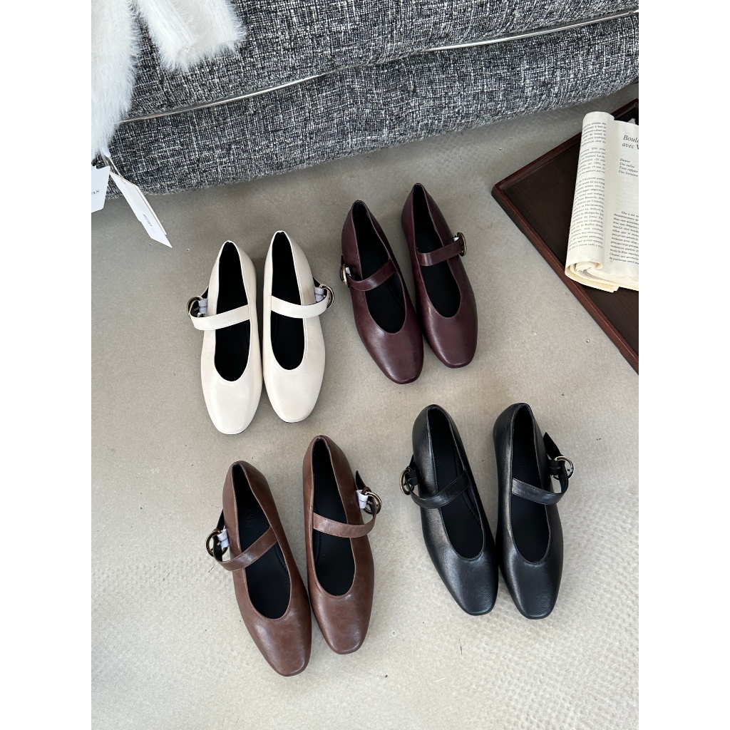 Jiamanni Sepatu Flatshoes Wanita Mary Janes Slip On Flat Shoes Wedges Cewek Dengan Tali Tengah Korean Style Elegan Kekinian Warna Hitam