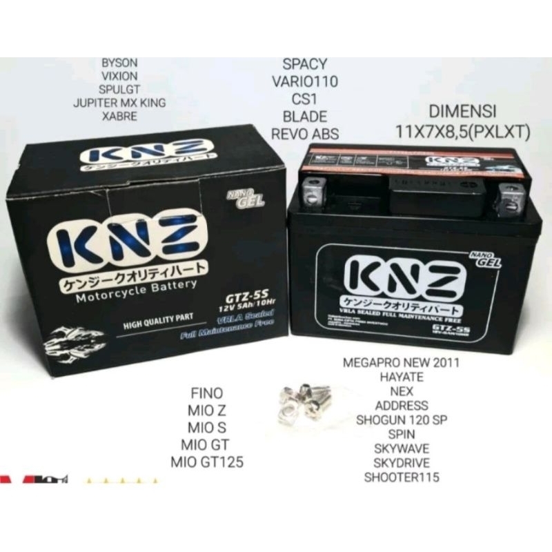 aki kering knz gtz 5s1.3 kg mf fs 12v5ah