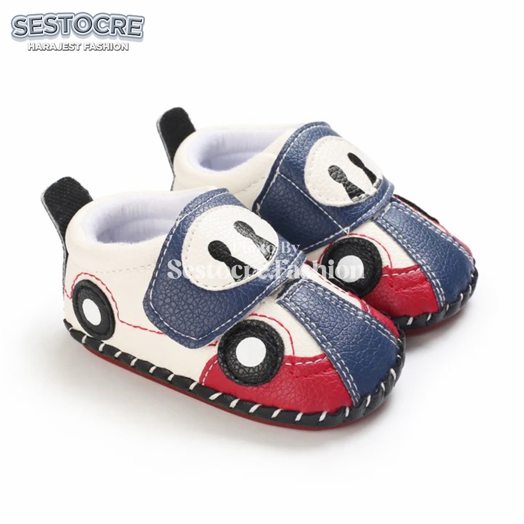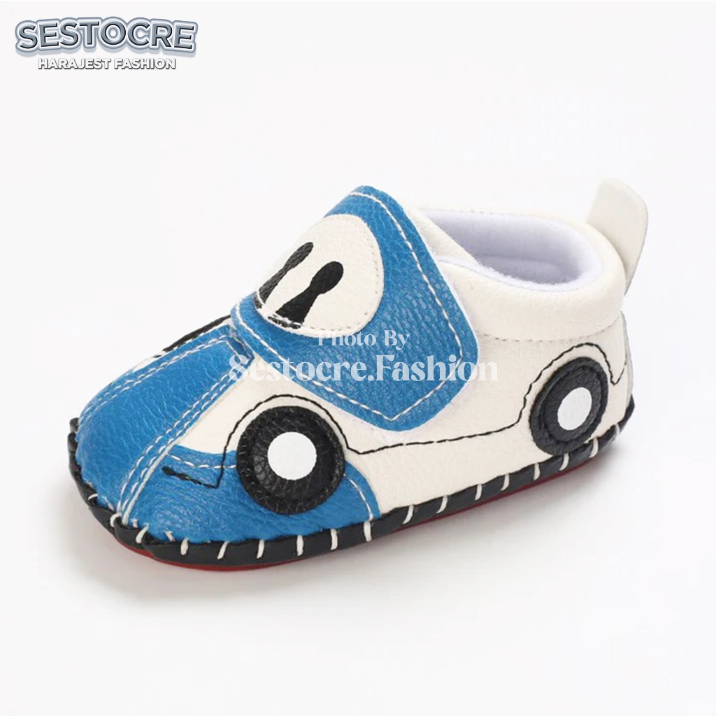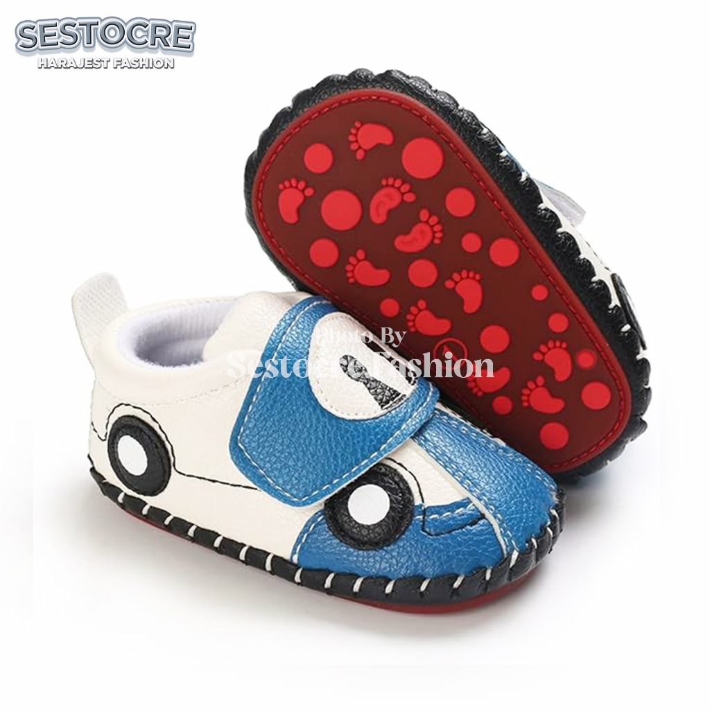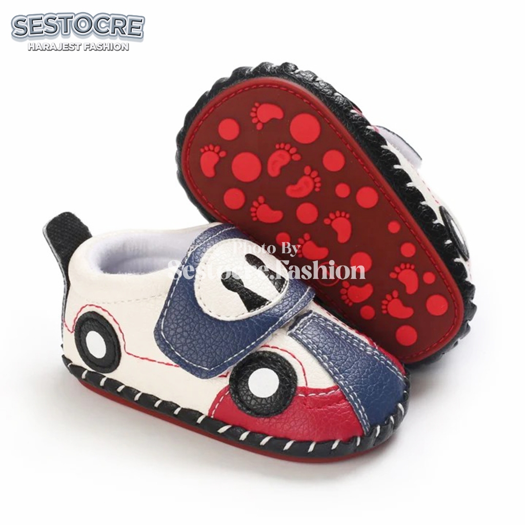 Sepatu Bayi Laki-Laki Motif Mobil Lucu Anti Slip Usia 0 - 12 Bulan Baby Shoes Prewalker Newborn Cowok Nyaman Terlaris -S