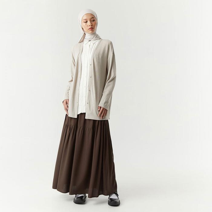 Anvi Cardigan By Aska Label - Basic Cardigan Rajut Dengan Bahan Yang Lembut Dan Adem - Oat, M