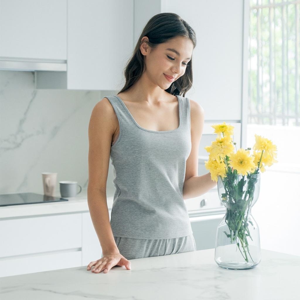 Isla Basic Tanktop Thick Strap Square Neck Stretch - Tanktop Kekinian - Pakaian Wanita - Inner - Singlet - Tank top
