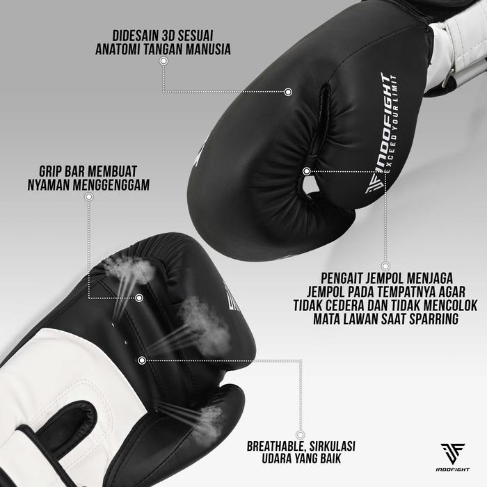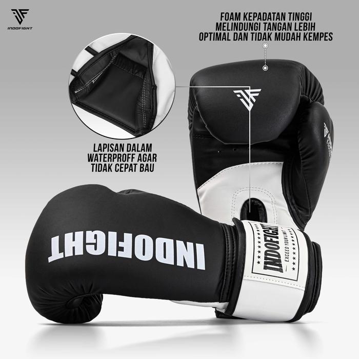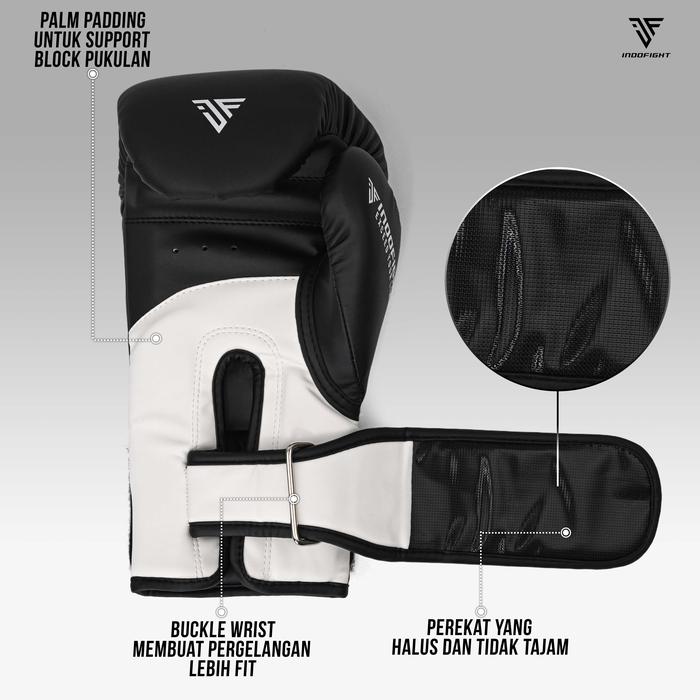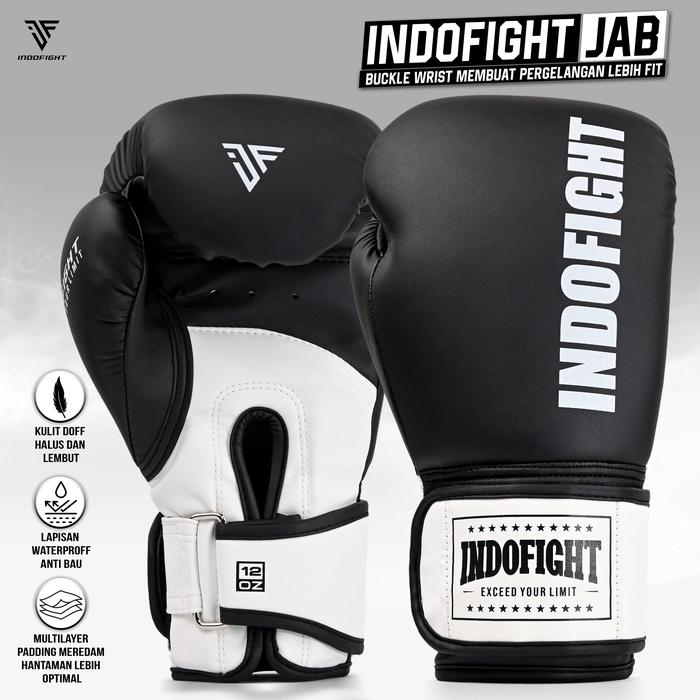 SARUNG TINJU BOXING INDOFIGHT GLOVES MUAYTHAI SARUNG TANGAN MUAY THAI GLOVE KICKBOXING DEWASA JAB - BGT-JAB-BLACK, 10 OZ