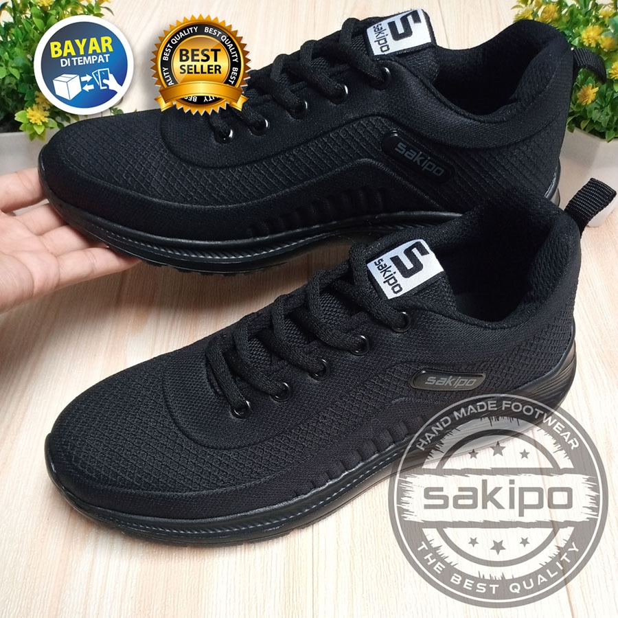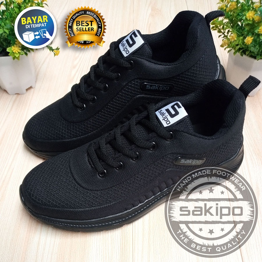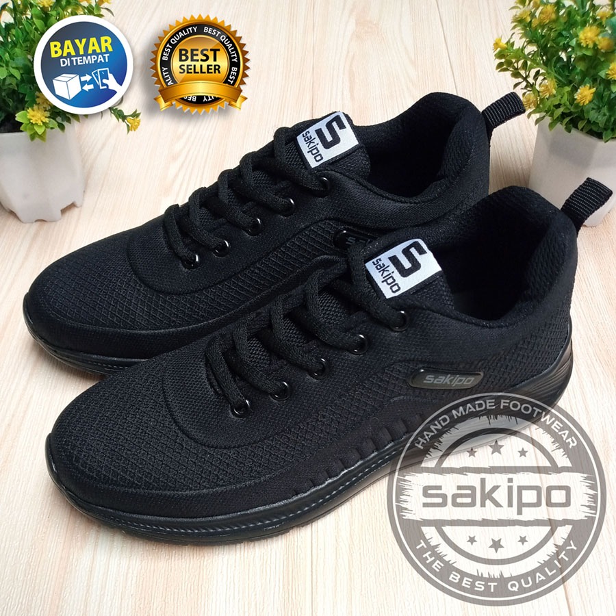 Sepatu Sekolah Hitam SD SMP SMA SMK Kuliah Sepatu Olahraga Jogging Ringan Bertali Hitam Sakipo