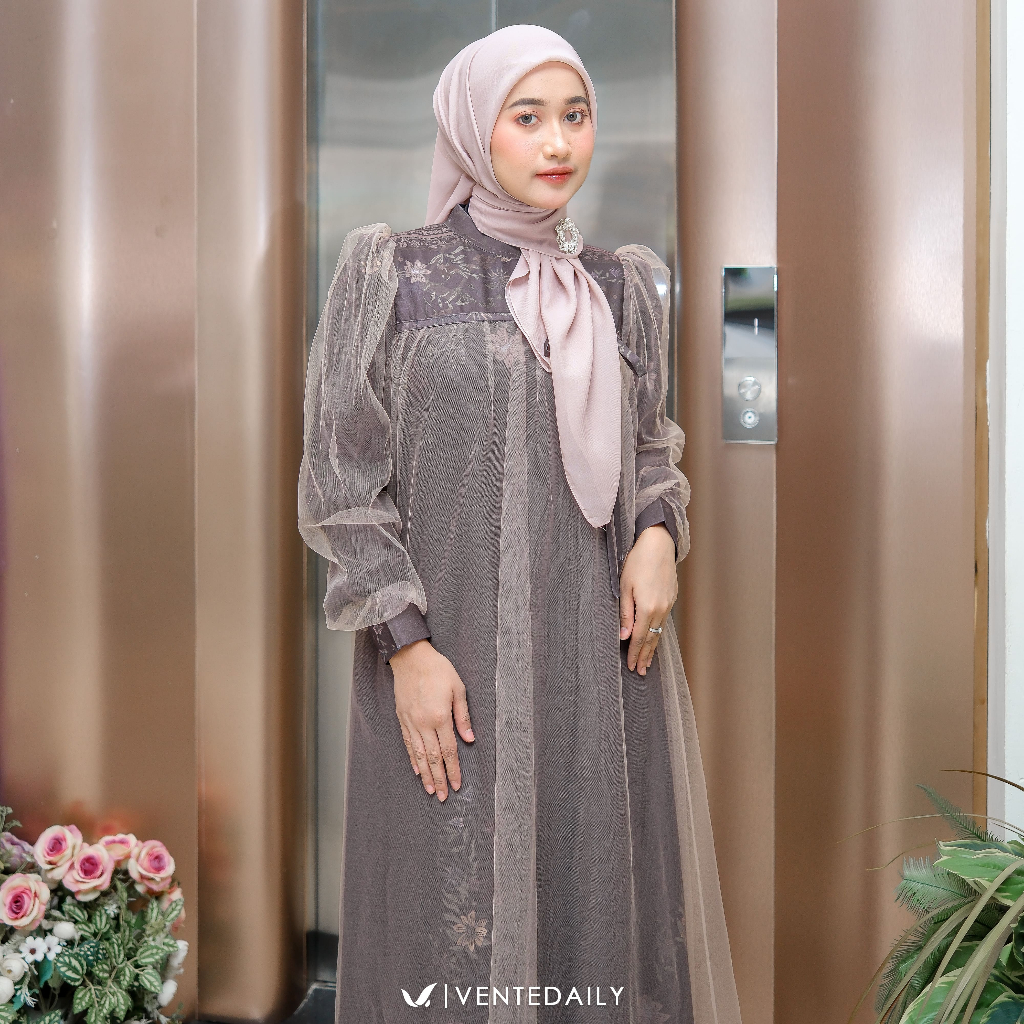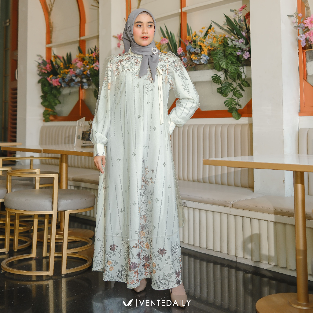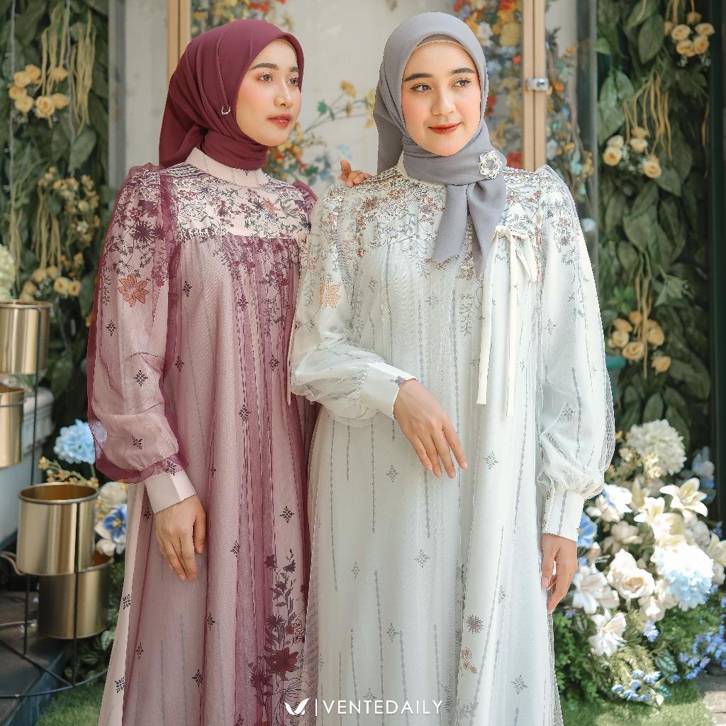 PROMO RAMADHAN Ventedaily - Savika Gamis Kondangan Kekinian Wanita | Elegan Motif Bunga | Dress Pesta Seserahan Ternurah
