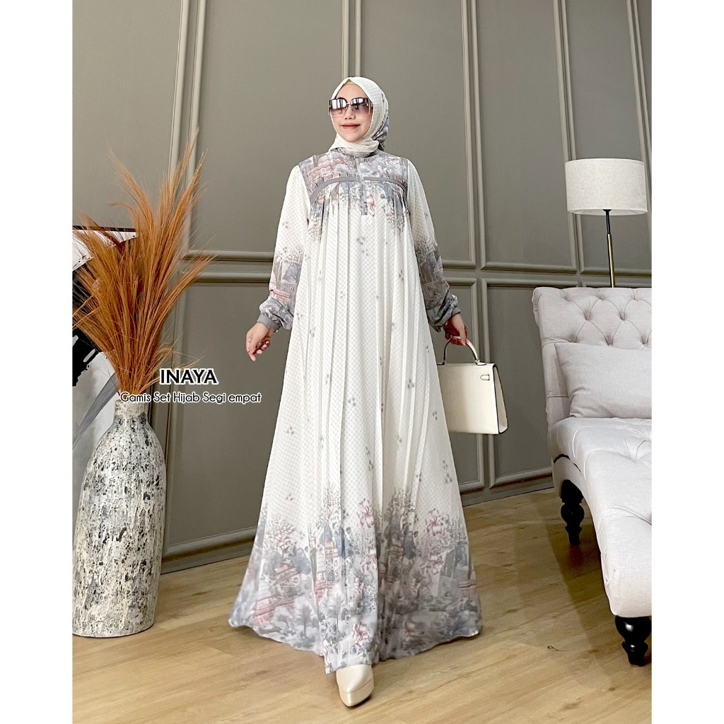 DISKON 45% Shireen Fs - INAYA Baju Gamis Muslim Set Hijab Model Terbaru Kekinian Bahan Ceruty Ready Seragaman Termurah