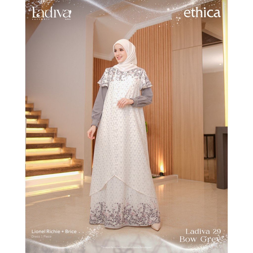 Baju Lebaran 2026 Ethica | Ladiva Bow Grey Set Sarimbit Keluarga 2026 Baju Lebaran Couple Keluarga Koko Gamis Kekinian