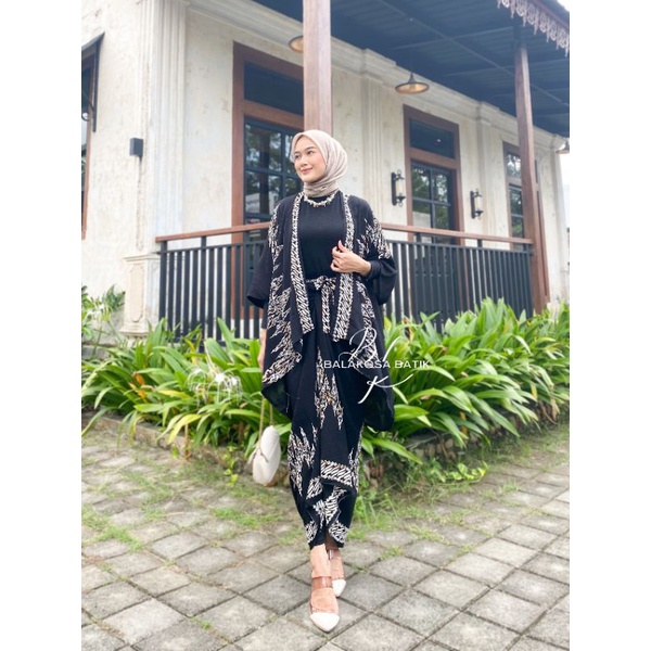 FIT KONDANGAN SIMPEL ONE SET BATIK ER ROK LILIT KIMONO WANITA RAYON GLOYOR MOTIF ETNIQ OVERSIZE MODERN