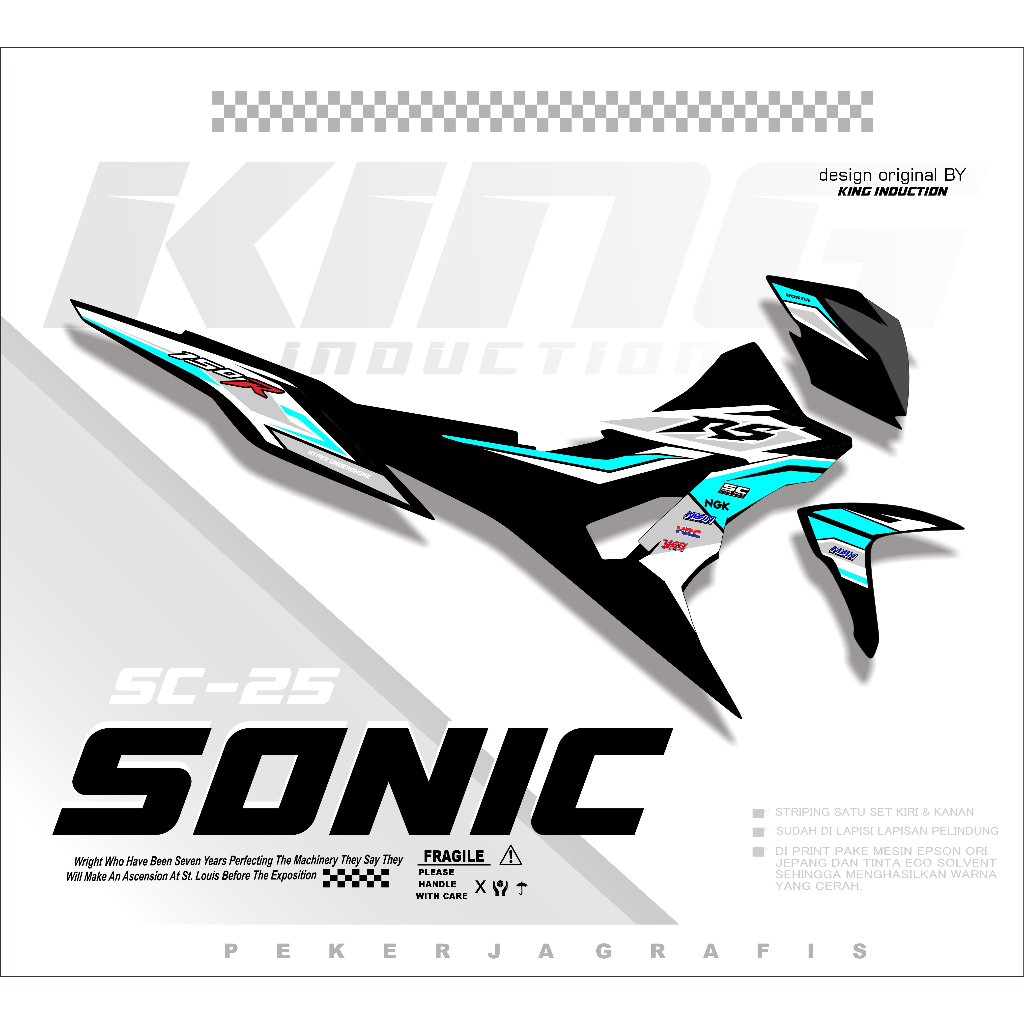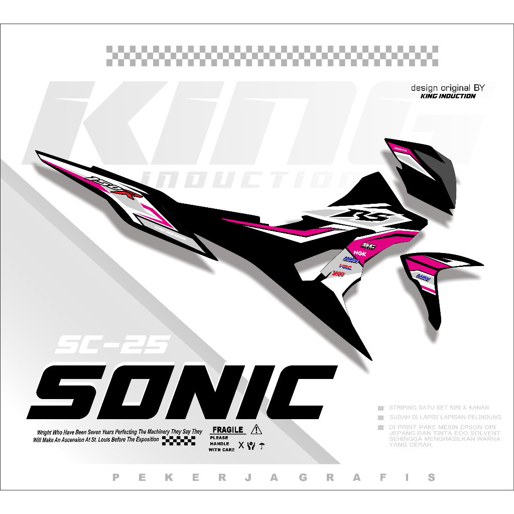 Striping Sonic 150R Stiker Motor Honda Racing Merah Putih Hitam | Kode SC-25