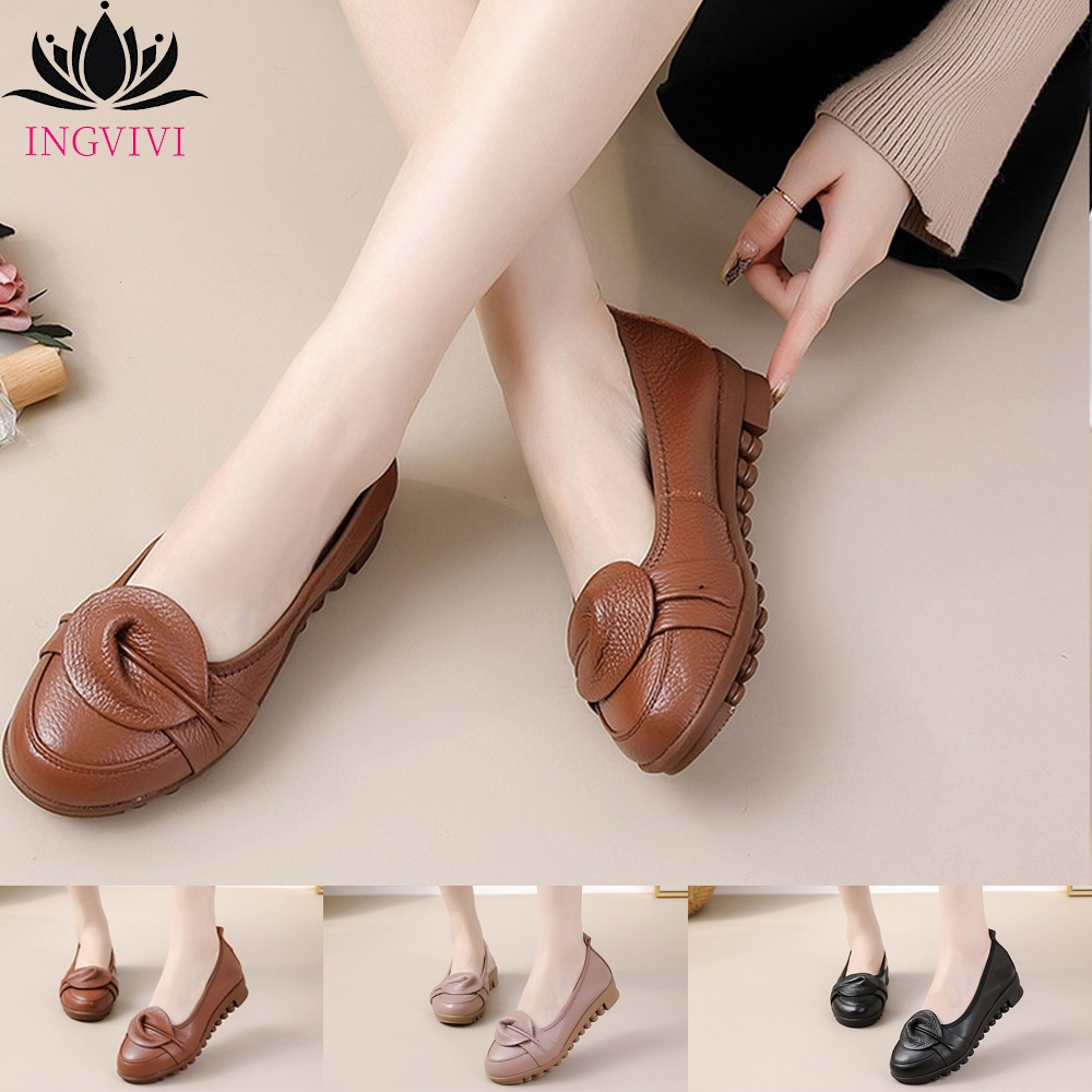 Sepatu Wanita INGVIVI Flat Melati Kulit Sapi asli Empuk dan Lentur Shoes - Tinggi 3 cm (Size 36-41)