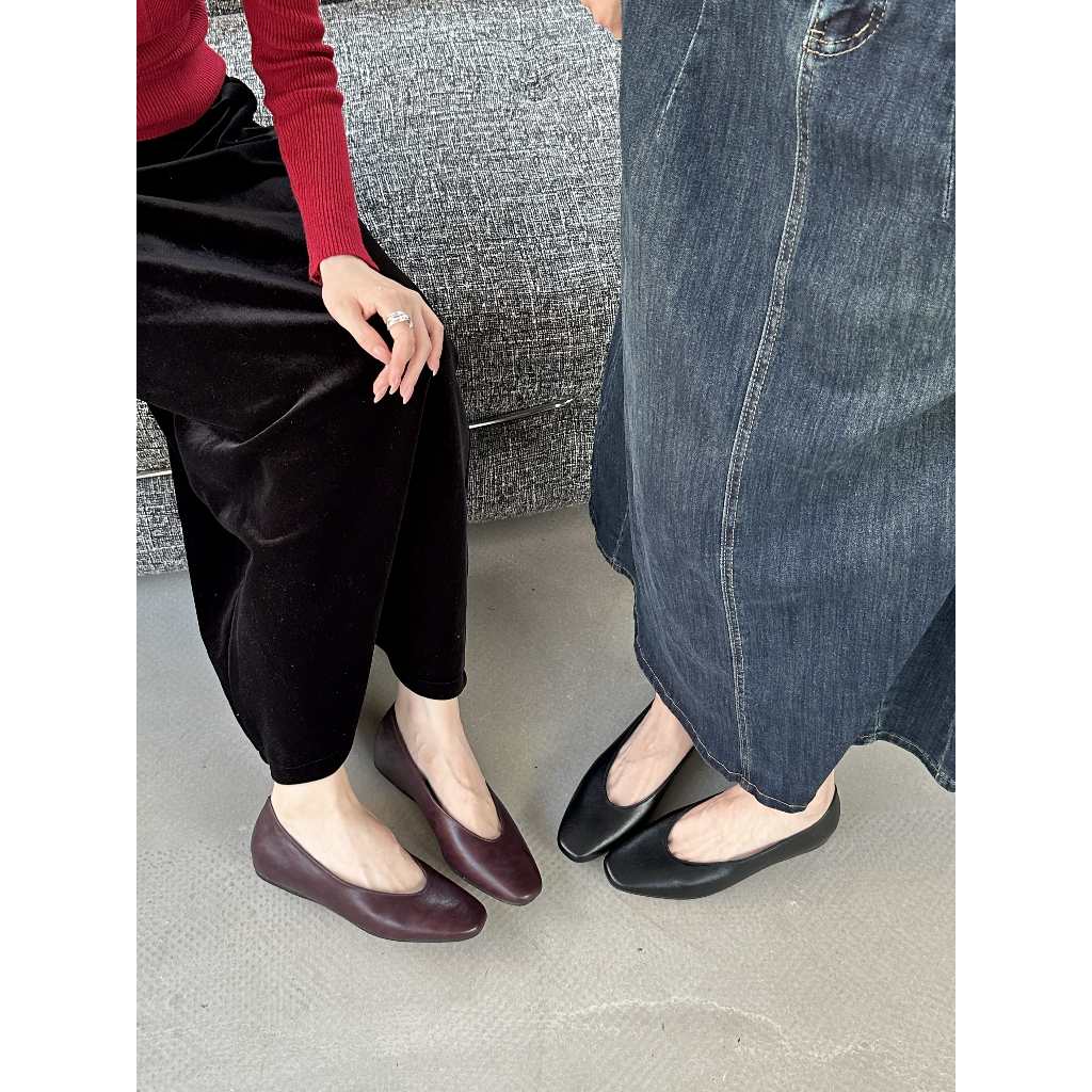 Jiamanni Sepatu Flatshoes Wanita Mary Janes Slip On Flat Shoes Wedges Cewek Korean Style Elegan Kekinian Warna Hitam, Coffe & Maroon Size 36-40 36-40