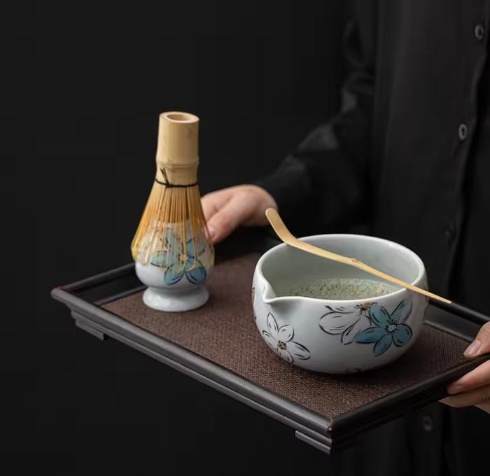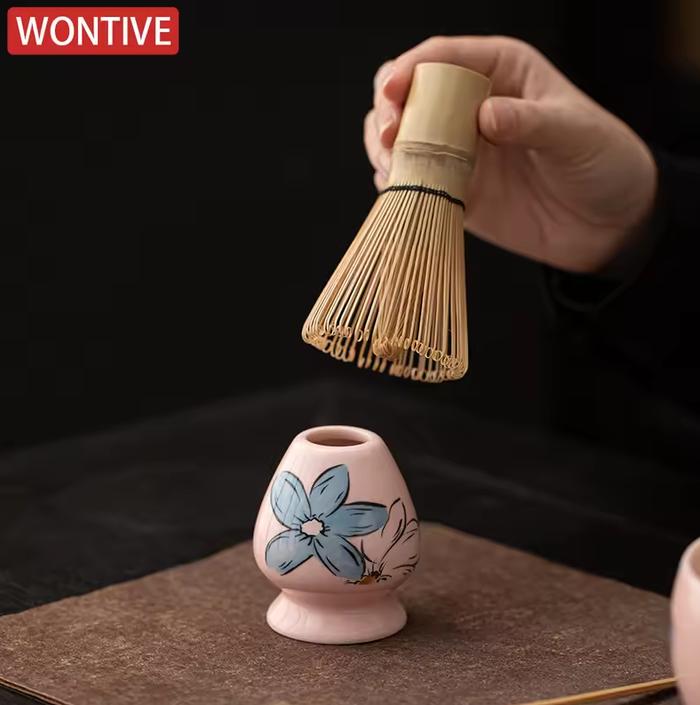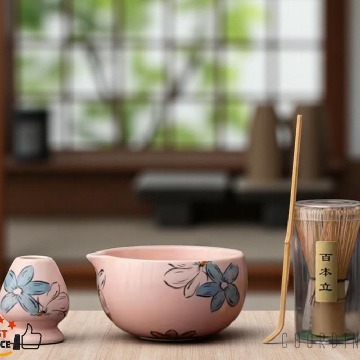 MATCHA SET MANGKUK KERAMIK TEH SET JAPANESE TEA CEREMONY CHASEN BAMBOO STICK MATCHA WHISK 4 IN 1 - Pink