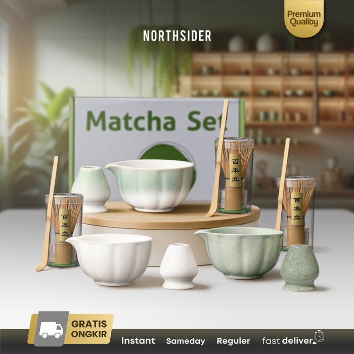 Japanese Chasen Matcha Set Mangkok Whisk stand sendok bambu Gift Boxed MS04 - Putih