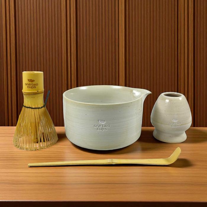 One Two Cups Set Mangkuk Teh Keramik Matcha Tea Chasen Chawan 4in1 - MYV16D - Kuning