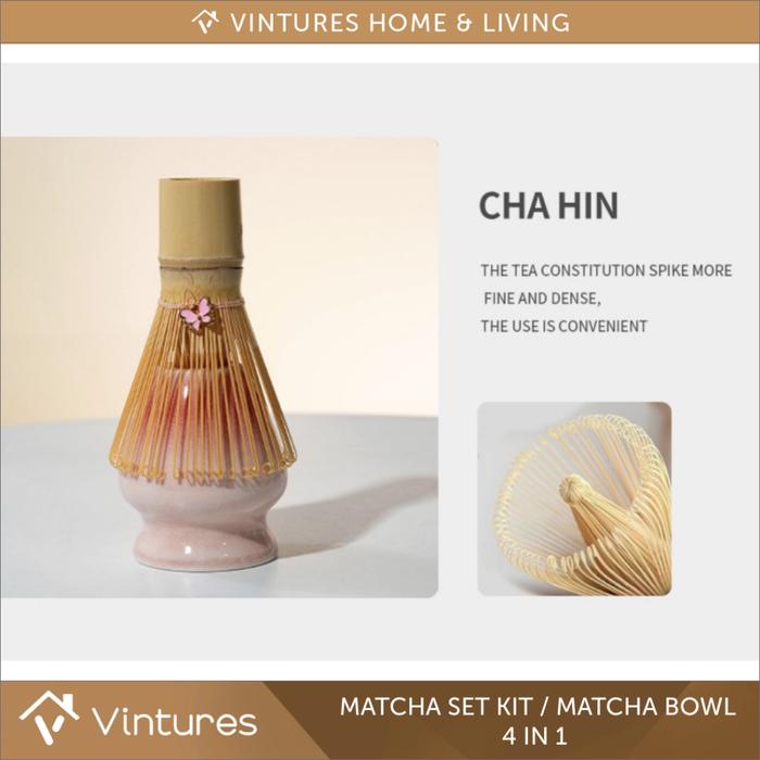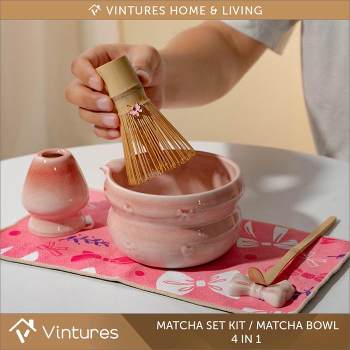 Matcha Set Kit 4 in 1 – Mangkok Matcha + Whisk Bambu + Sendok + Holder | Premium Gift Set - Green Matcha