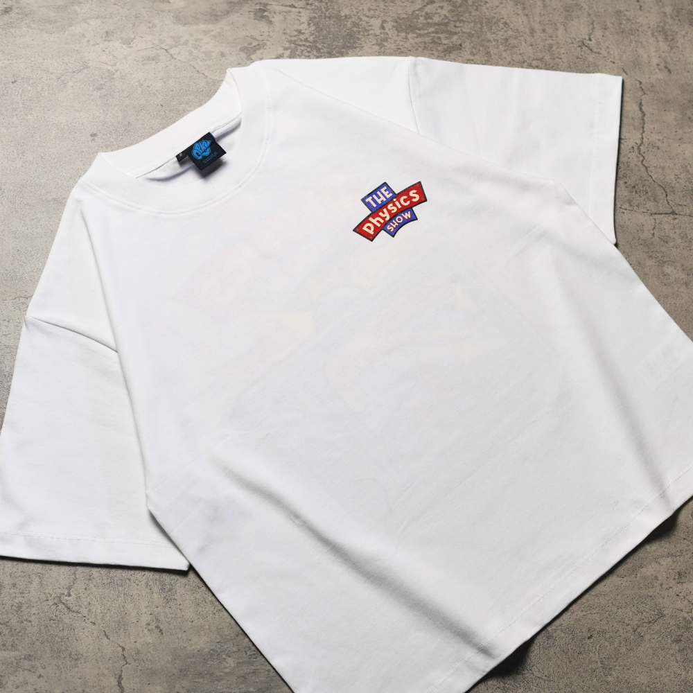 QPKY 16s Boxy Fit White Physics Show - Kaos 16S Heavyweight Kaos Distro Heavyweight Tee Kaos Pria Wanita