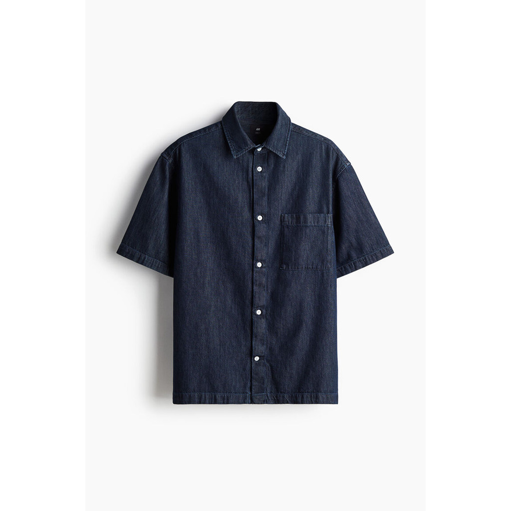H&M Pria Loose Fit Denim Shirt 1244405002_Blue