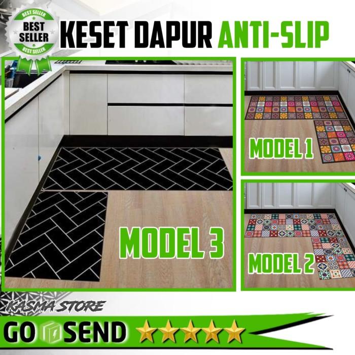 Keset Dapur Motif Kotak Anti Slip R Dapur Kamar Mandi Balcony Rug - Model 1, 40 X 120 Cm
