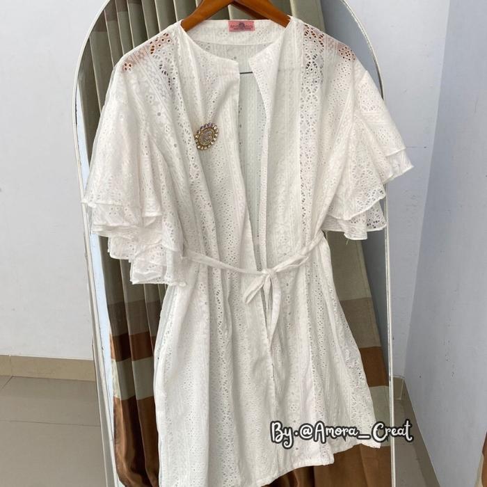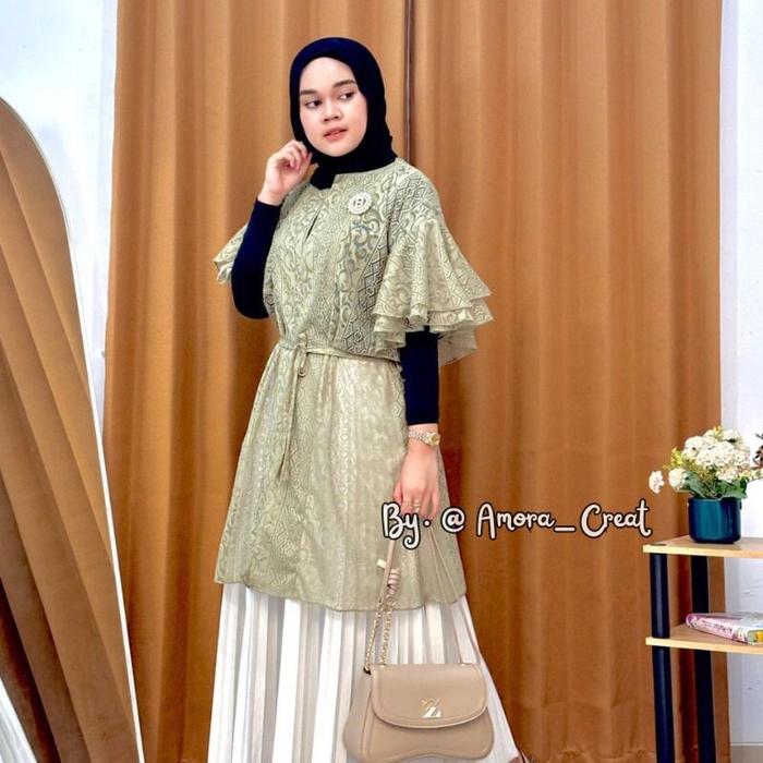 Amora_Creat Malika Outer Brukat Cardigan Brukat Kondangan Lengan Ruffle Wanita Muslim Panjang Kardigan Hitam Atasan Lin