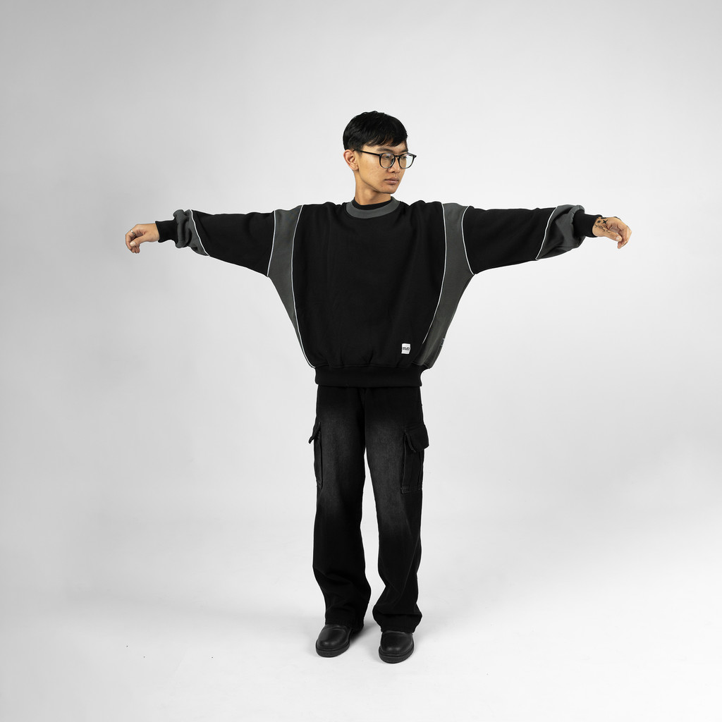 Hlpd Weirdworld Jaket Crewneck Boxy Kombinasi Pria Wanita Sweater Clea - Polos Black