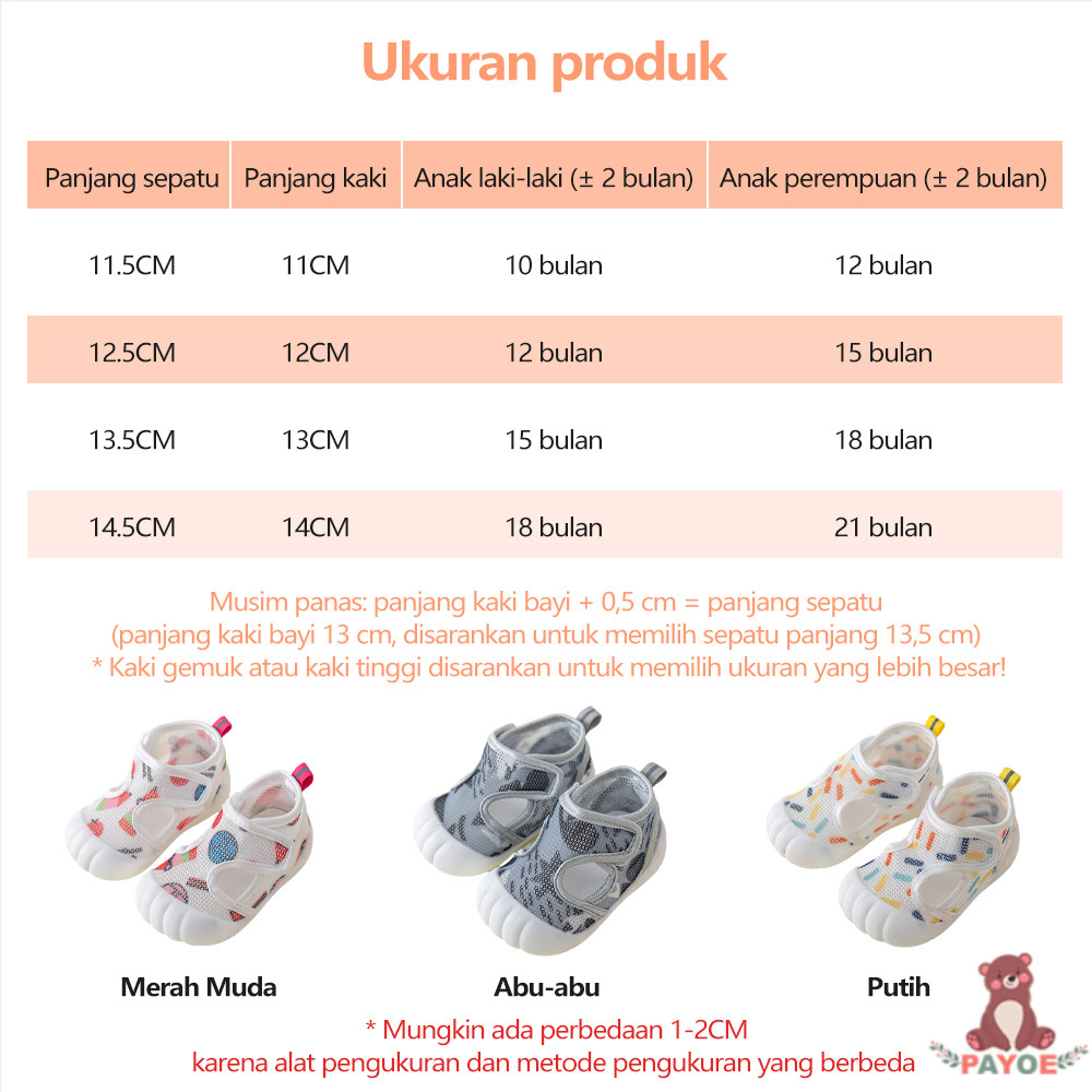 PAYOE Sepatu Jaring Anak Prewalker Slip On Sneaker Shoes Toddler Lucu Baby Shoes Non Slip 0-3 Tahun
