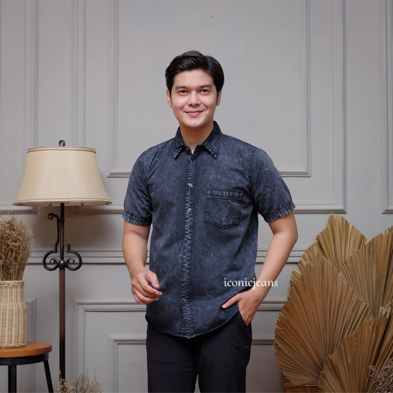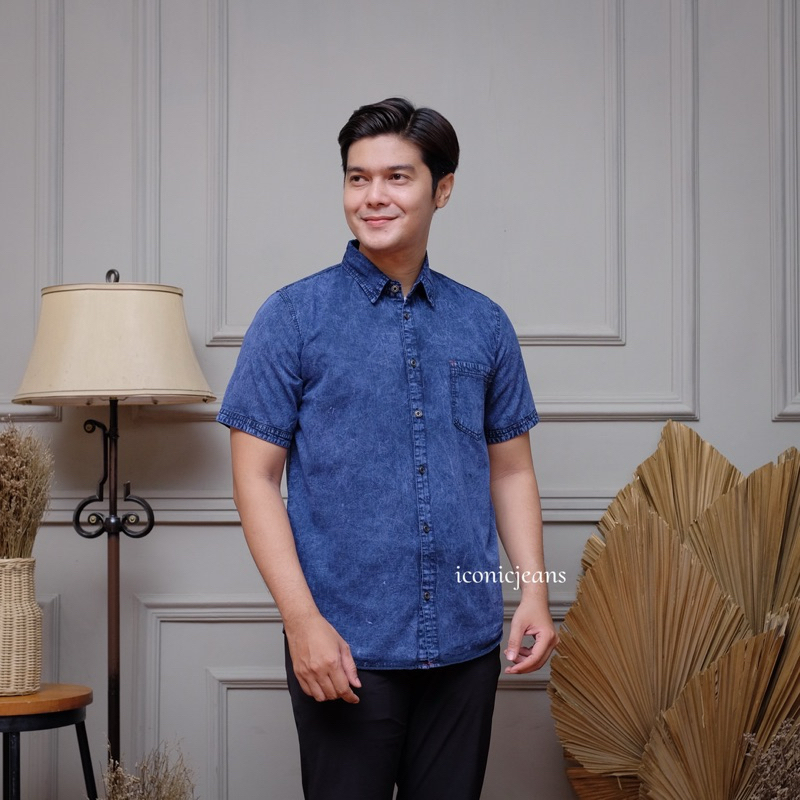 Iconicjeans - Dion Kemeja Denim Lengan Pendek Dewasa Kemko Jeans Denim