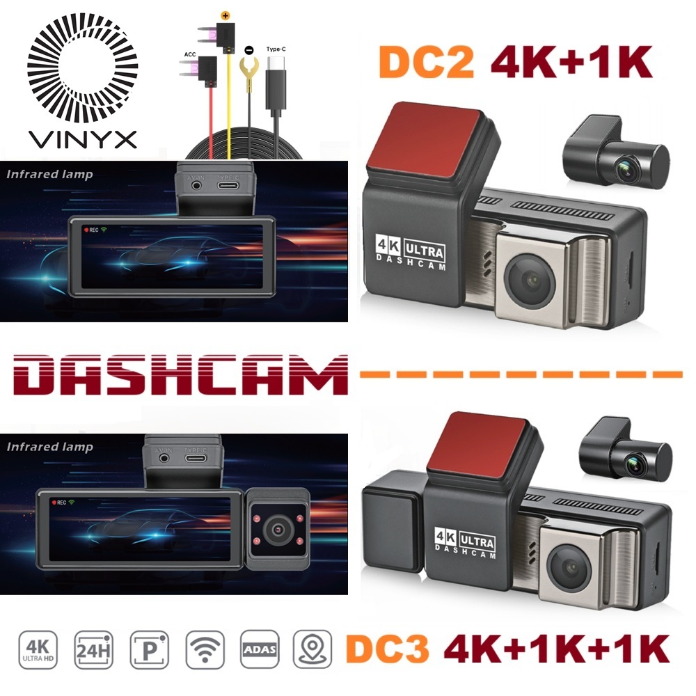 DashCam VINYX DC3 Triple Channel 4K+1K+1K ADAS GPS WiFi 24 Jam HDR Kamera Dash Cam DC2 Dual Channel 4K+1K CCTV DVR Mobil