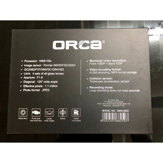 Dual Kamera DVR ORCA DWS-6825 ADAS / Kamera DVR Mobil Dual Kamera With ADAS