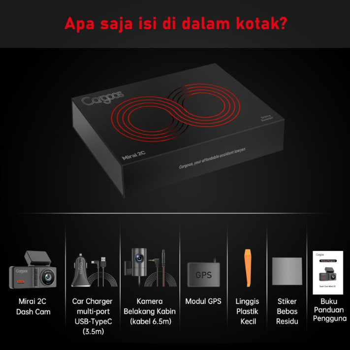 Cargoos Mirai 2c Dash Cam 4K Car DVR Mobil GPS 2 Kamera Camera Wifi GPS