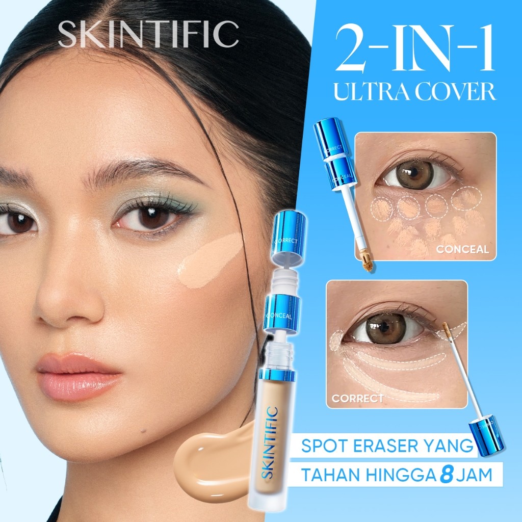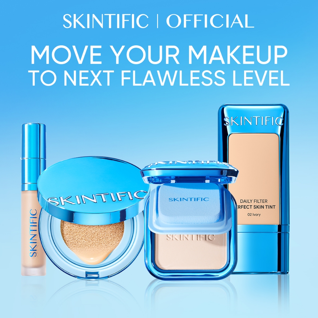 [Mall] SKINTIFIC OFFICIAL STORE 4pcs Paket Perfect Matte Makeup Set Serum Concealer Matte Cushion Ultra Cover Powder Fun