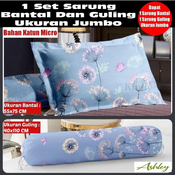 Sarung Bantal Dan Sarung Guling Sepasang Ukuran Kingkoil / Jumbo Bahan Bagus Katun Micro Motif - Silva Tosca