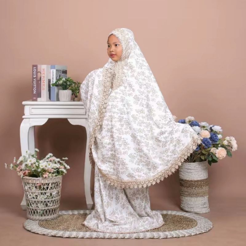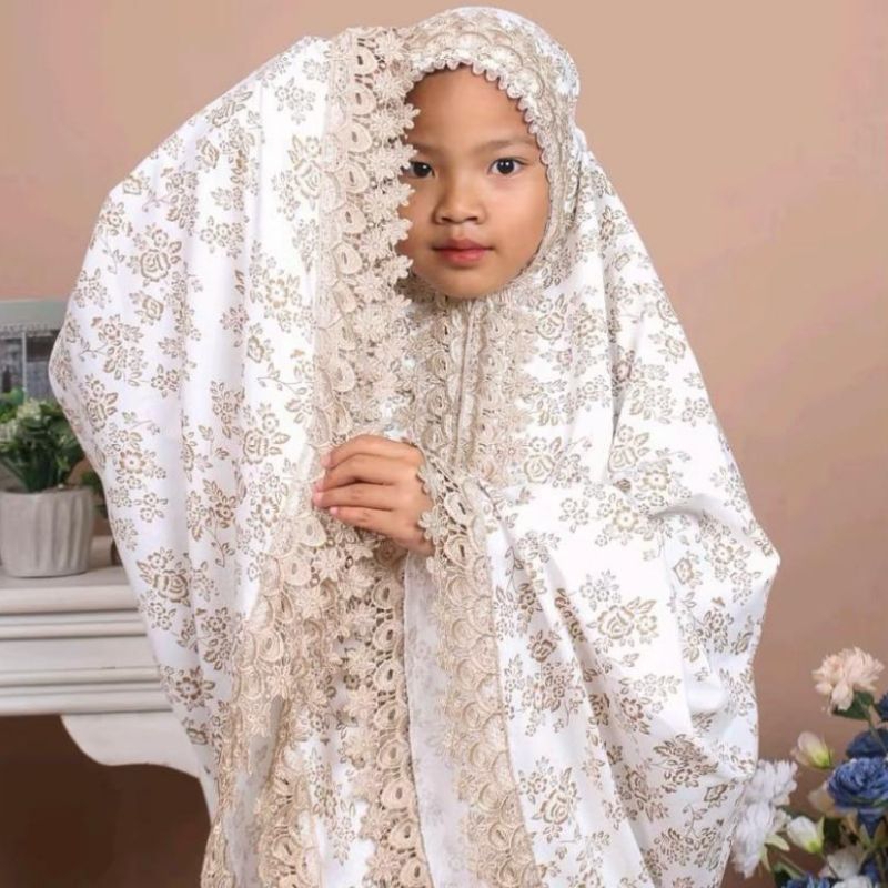 MUKENA ANAK SERIES MOTIF GLITTER G4LD BUNGA (2IN1) BAHAN KATUN VOIL PREMIUM