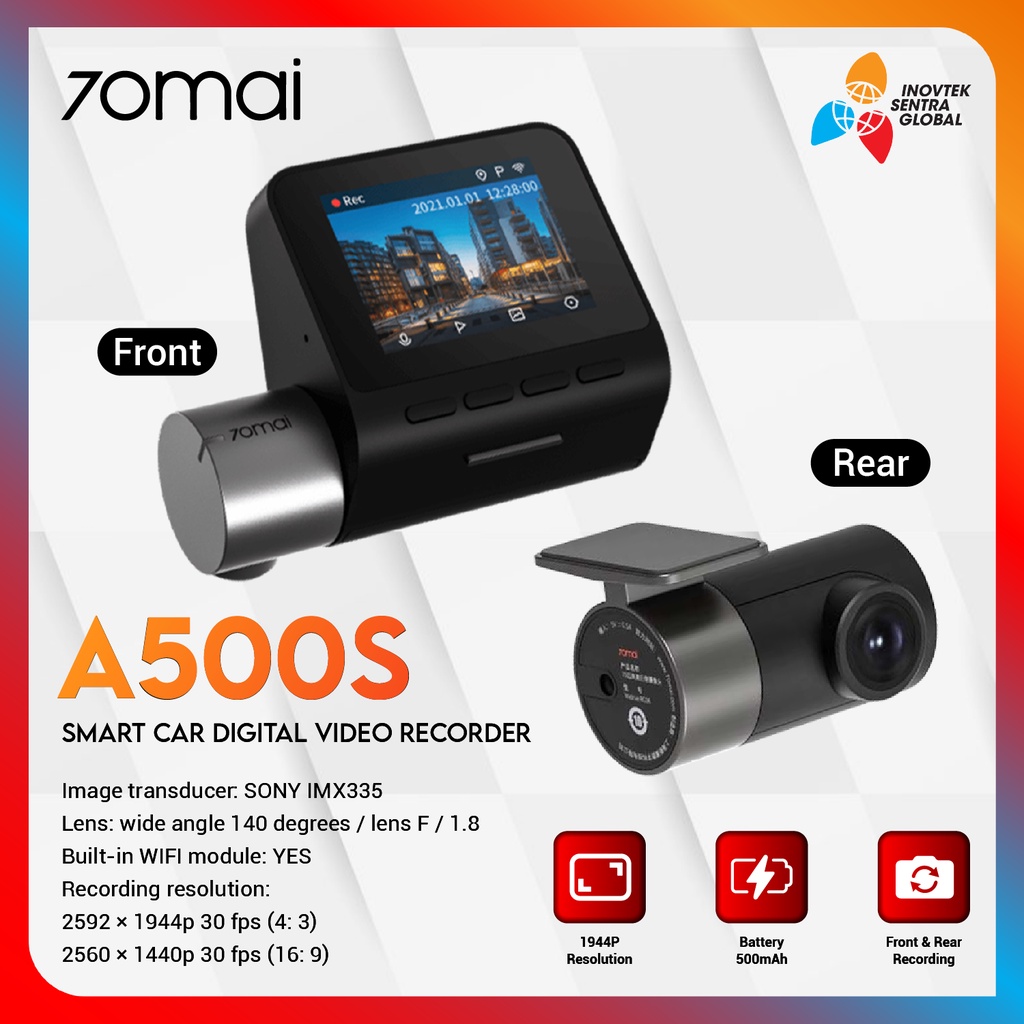 70mai A500S Smart Dash Cam Pro Plus + Rear Cam Set 1944P Kamera Mobil