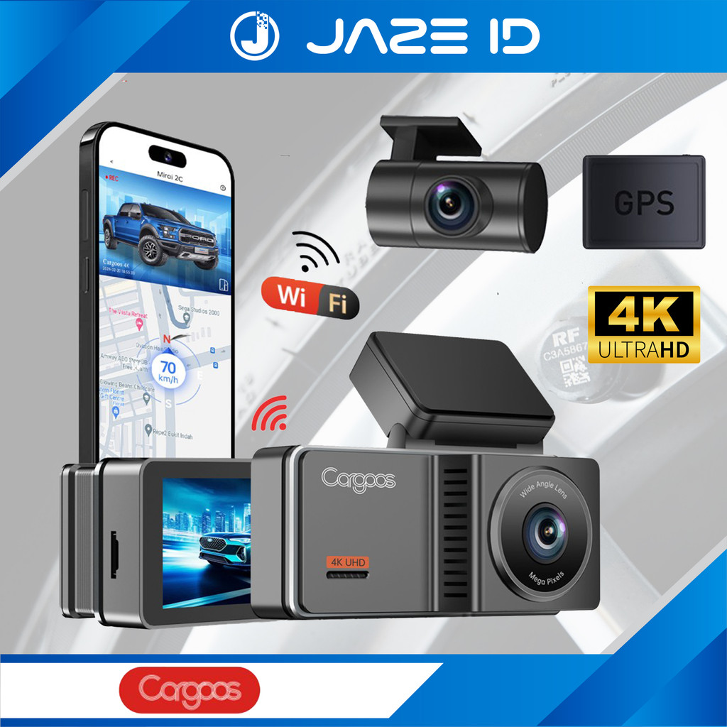 Cargoos Mirai 2c Dash Cam 4K Car DVR Mobil GPS 2 Kamera Camera Wifi GPS