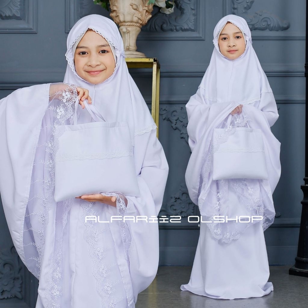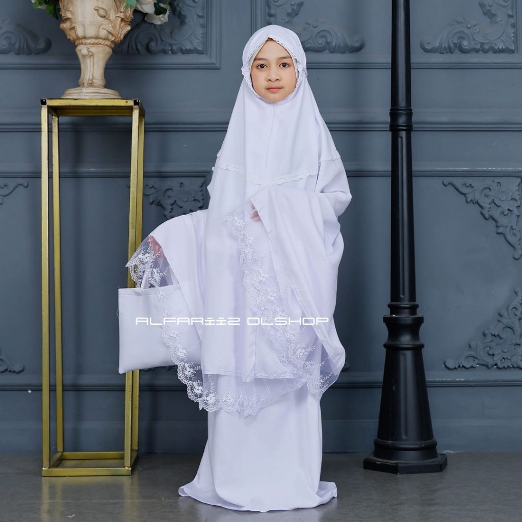 Mukena Anak Tanggung HILYA 2In1 Resleting Renda Mewah Usia 8 Sampai 11Tahun Bahan Katun Premium
