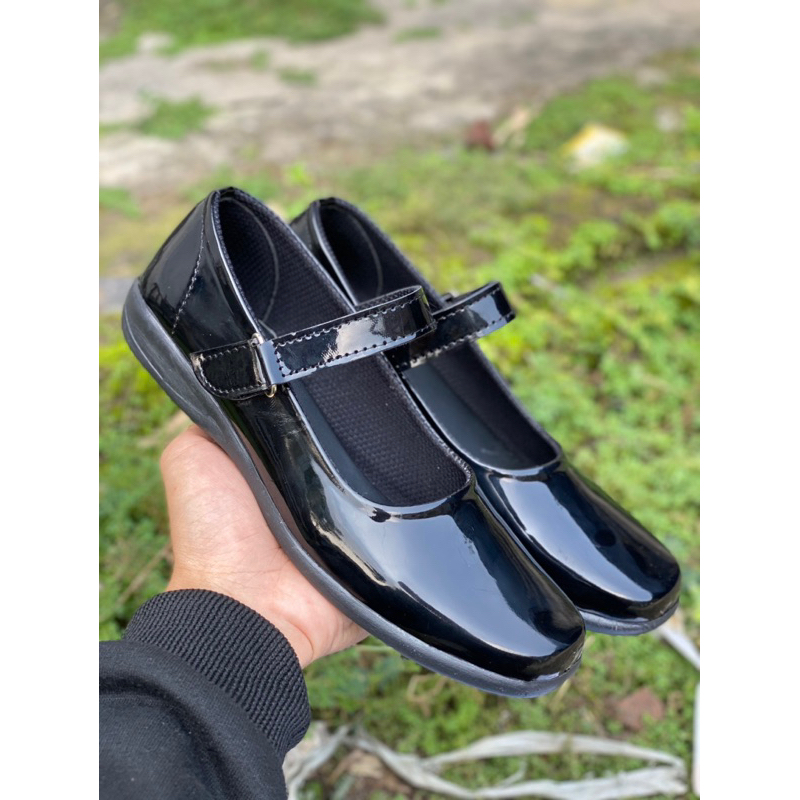 DURACHY Sepatu Pantofel Wanita Kantor Hitam Kilap Glossy Paskibra