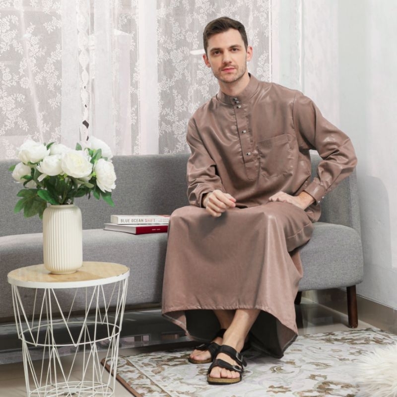 Family Muslim - Jubah Gamis Pria Usia Mulai 14 Tahun 4ppi Lengan Panjang Madani Navy