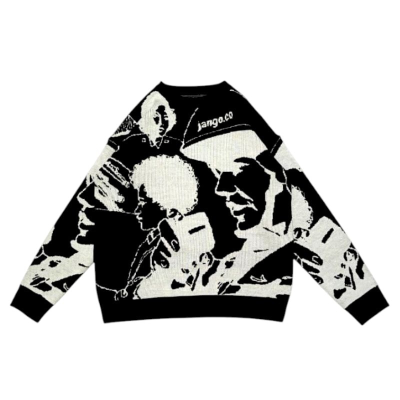 Jango Knitwear Sweater Sketsa Black | Sweater Rajut Unisex Premium Di
