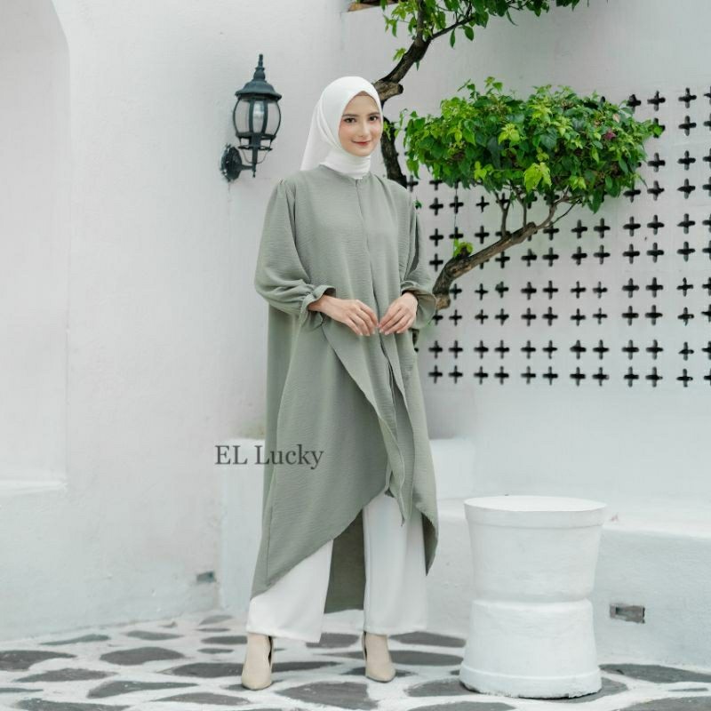 Long Tunik Elena Crinkle Airflow - Dress tunik - Daster kondangan - gamis midi dress