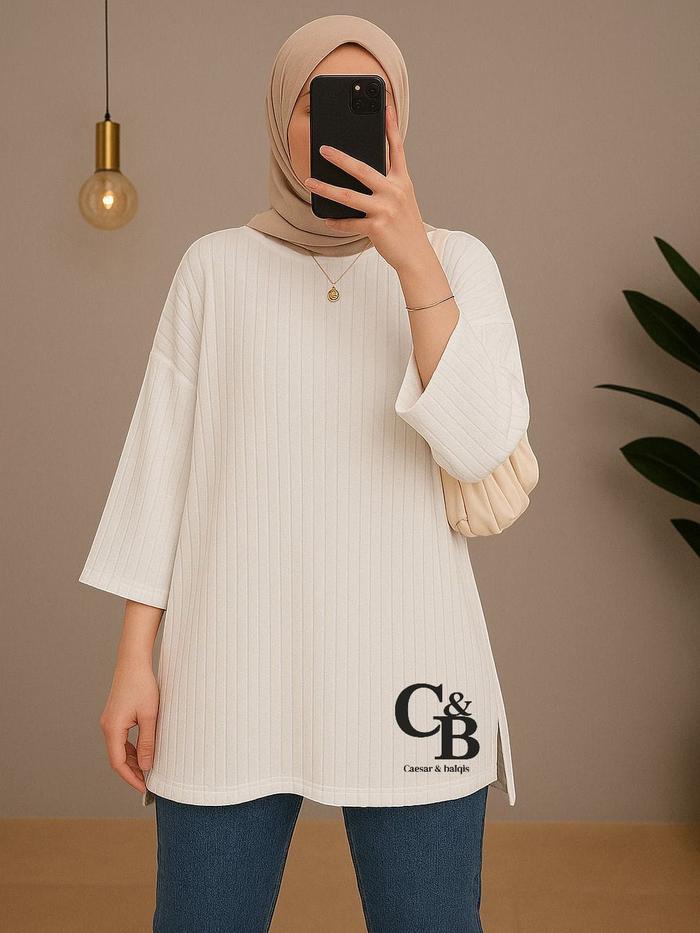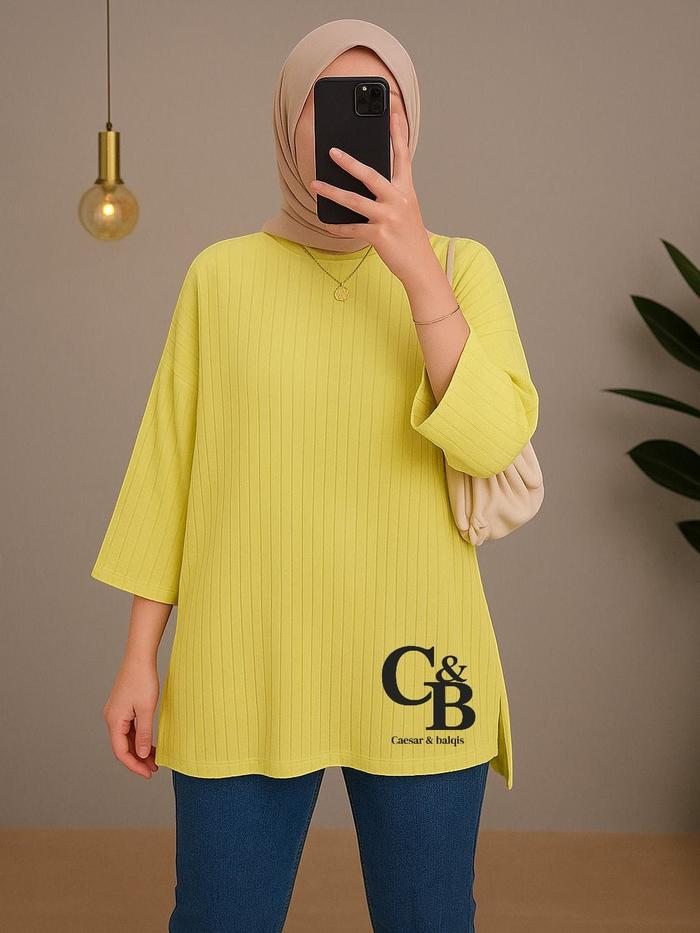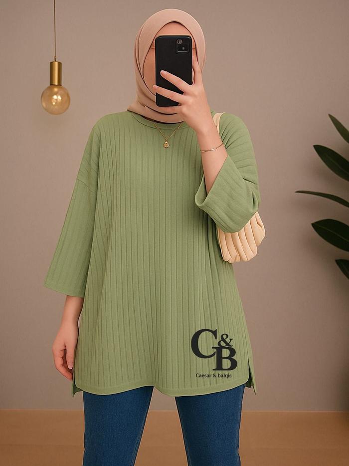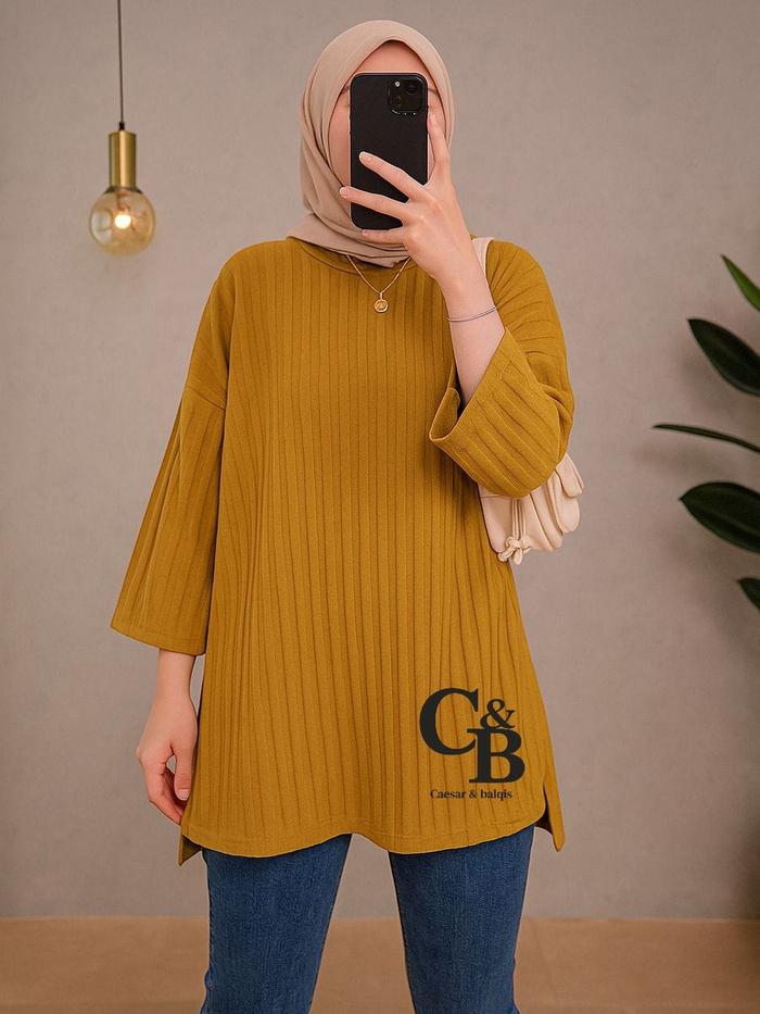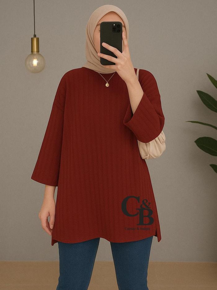 Oversize Knit Hornet Tebal Atasan Tunik Lengan 7/8 Atasan Baju Santai Cantik High Wanita Mewah Panjang Knitwear Basic T