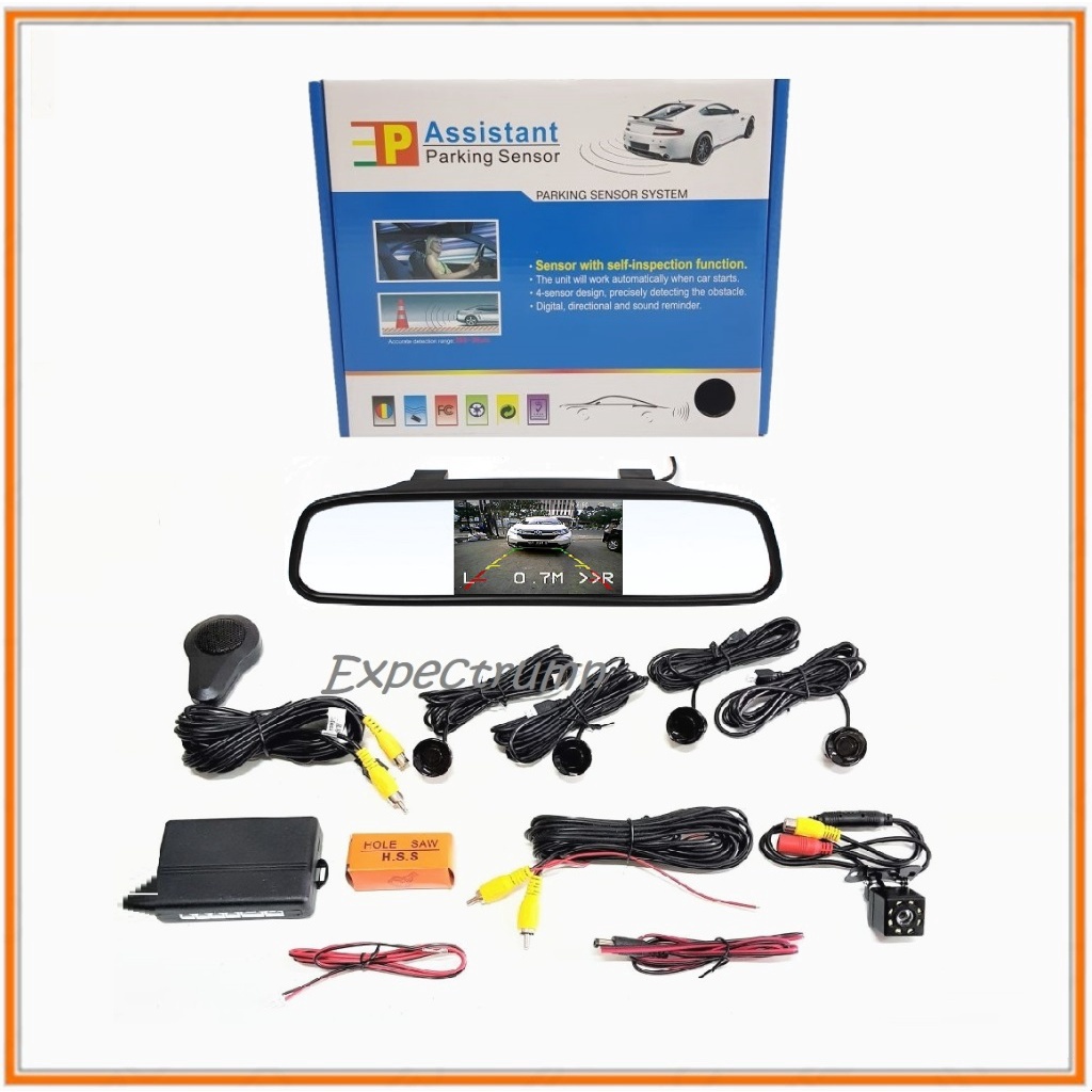 Monitor Spion 4.3 Inch + Kamera Mundur + Video Sensor Parkir 4 titik