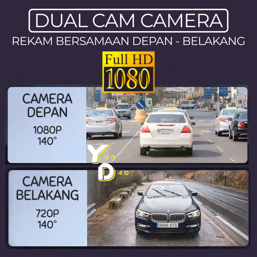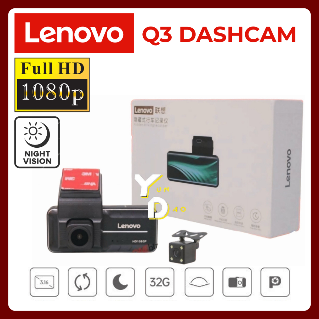 Lenovo Q3 WIFI Dashcam Mobil Depan Belakang Car Camera Original DVR Dual Full-HD Full Screen