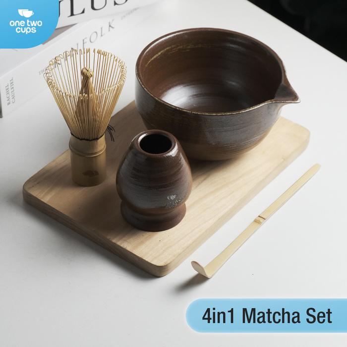 - One Two Cups Matcha Set Kit Chawan Chasen Stand Chashaku 4 PCS - N41 - - Brown yellow