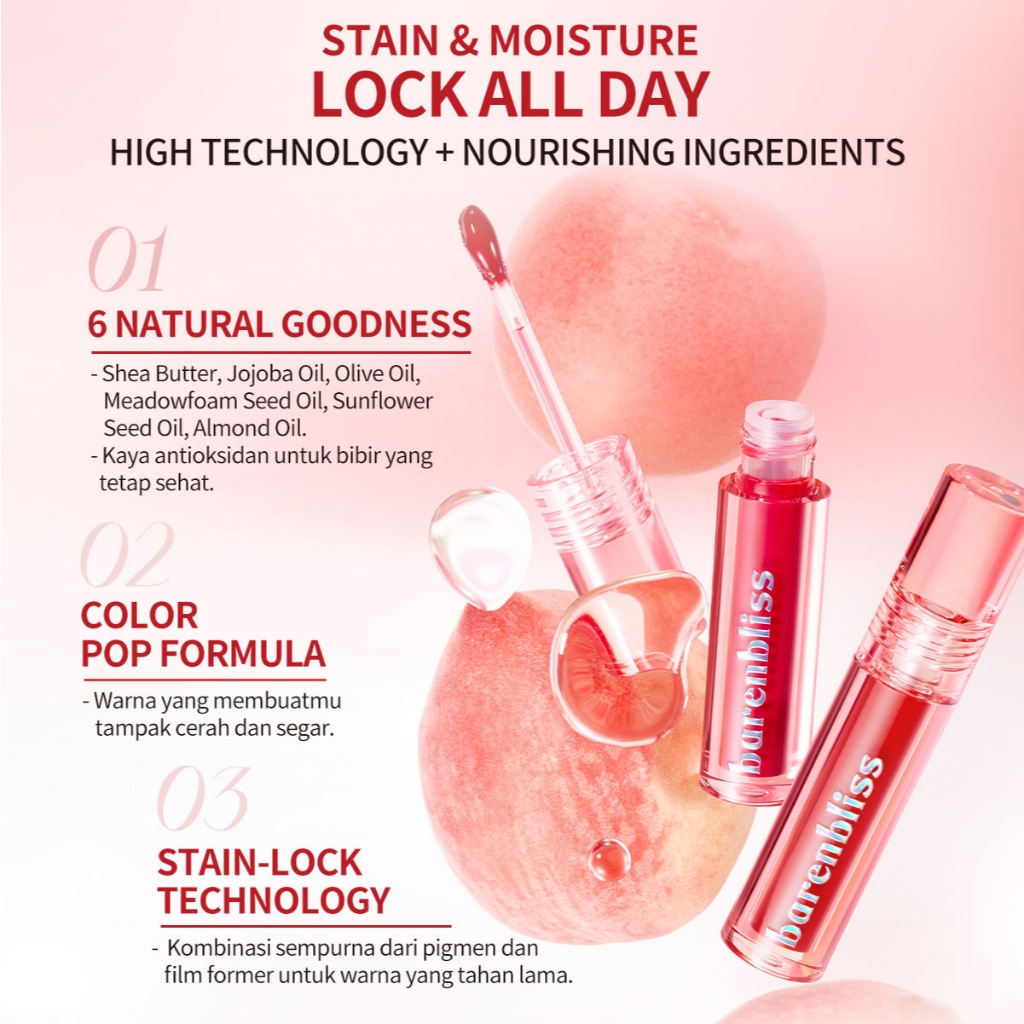 BNB barenbliss Lip Tint Peach Makes Perfect 3ml Liptint Ringan Korea Glossy Stain Melembabkan hingga 24 Jam Hydrating