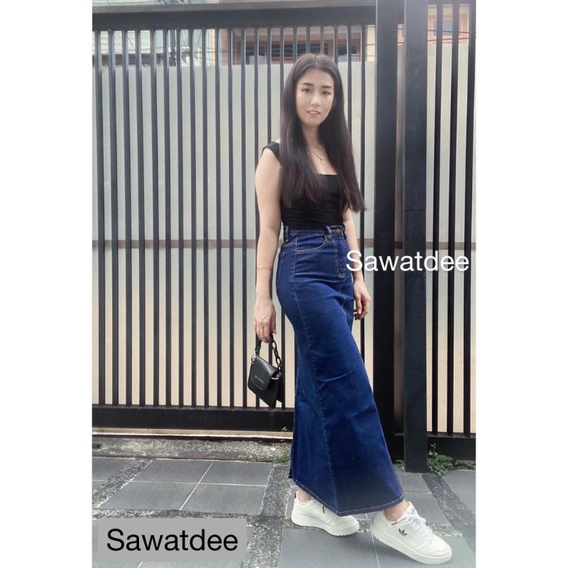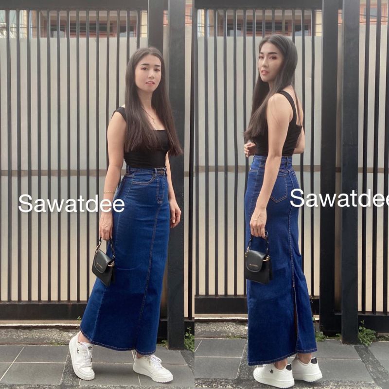 (Bisa ) Rok jeans high waist panjang jumbo | Rok span panjang | Rok kekinian