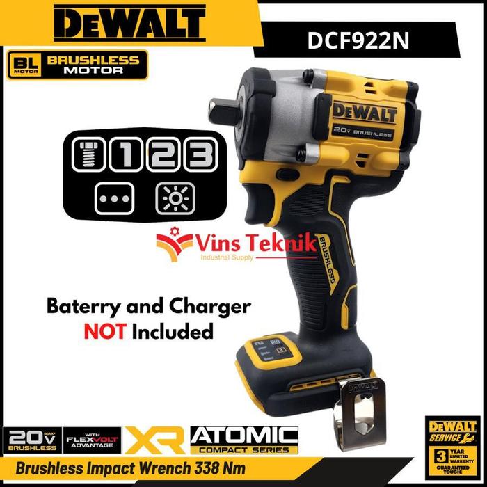 DEWALT DCF922N MESIN PEMBUKA BAUT BATERAI CORDLESS BRUSHLESS IMPACT WRENCH 1/2" 20V DCF922