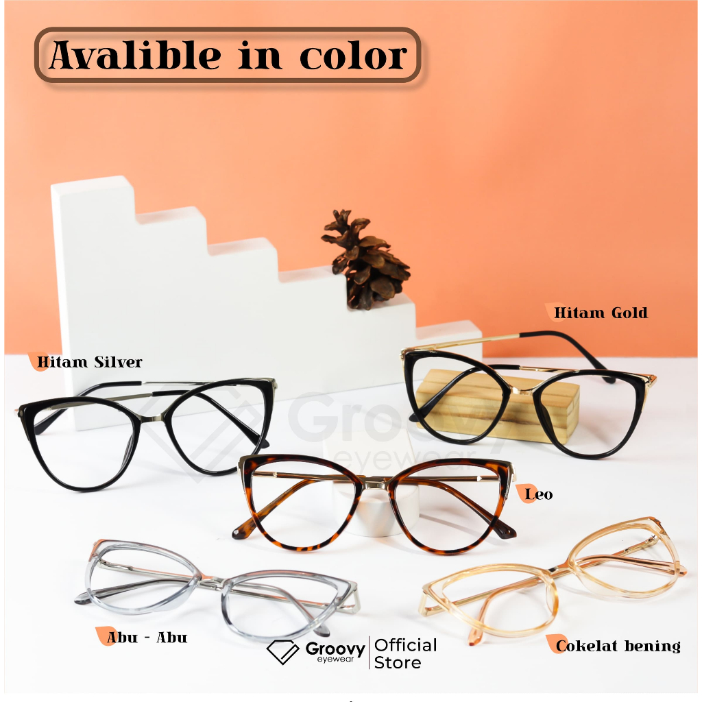 Groovy Eyewear - Kacamata Cathy Photocromic Blueray Minus Antiradiasi Model Cat Eye Crystal Glass