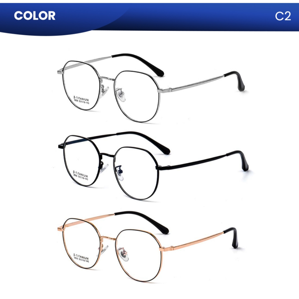 IOOI Kacamata Bulat Titanium Bisa Minus Photocromic Anti Blueray Frame Ringan Pria Wanita 2806