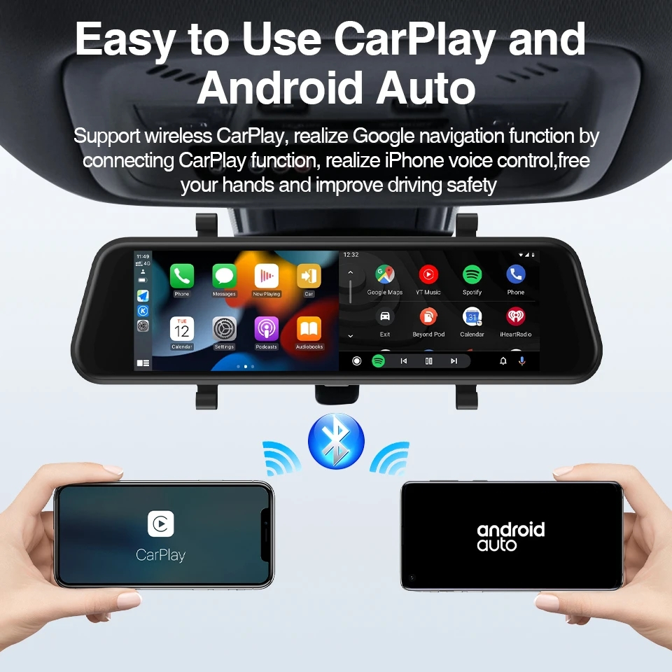 CAR DVR / Dashcam mobil 10" 4K, 2 Kamera, WIFI, Support Android Auto, Apple Car Play