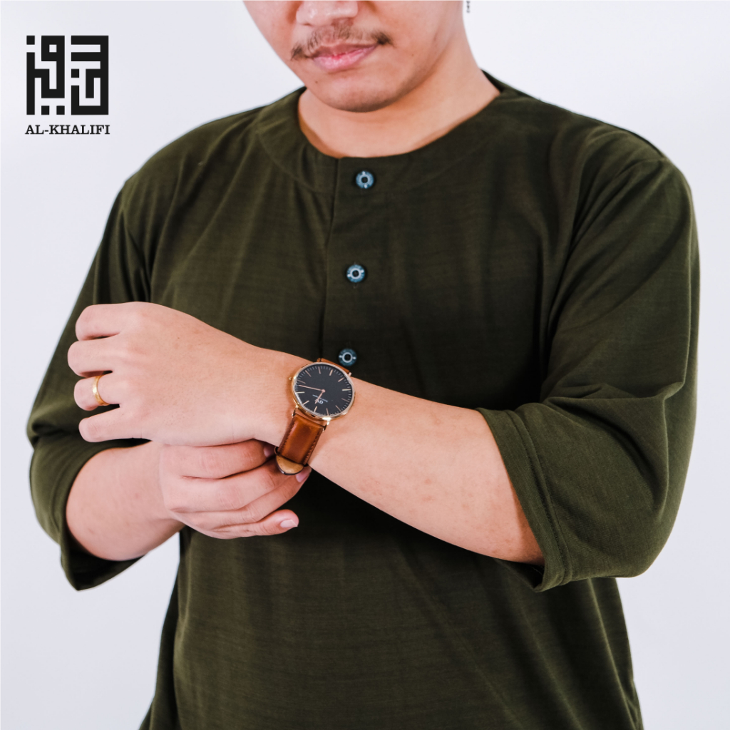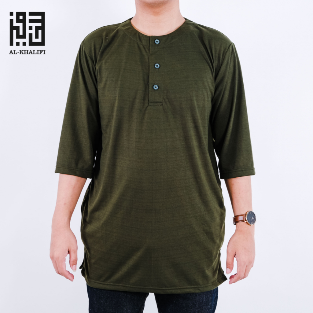 AL-KHALIFI - Kaos Koko Kurta Lengan 3/4 Baju Koko Muslim 4ppi - Army