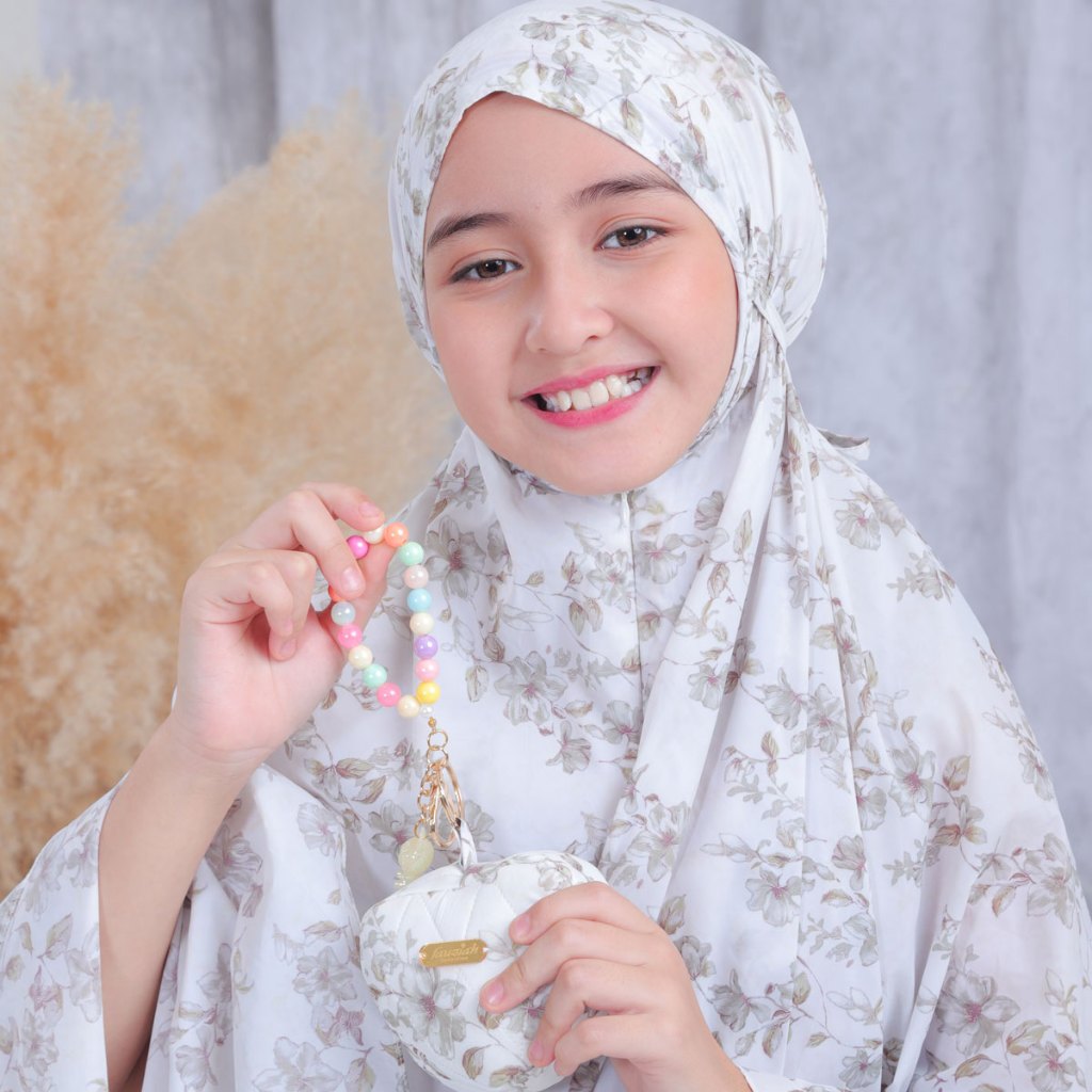 Mukena Anak Perempuan Resleting 2in1 Travel Mini Pouch Usia 6-12Th Parasut Motif Kombinasi